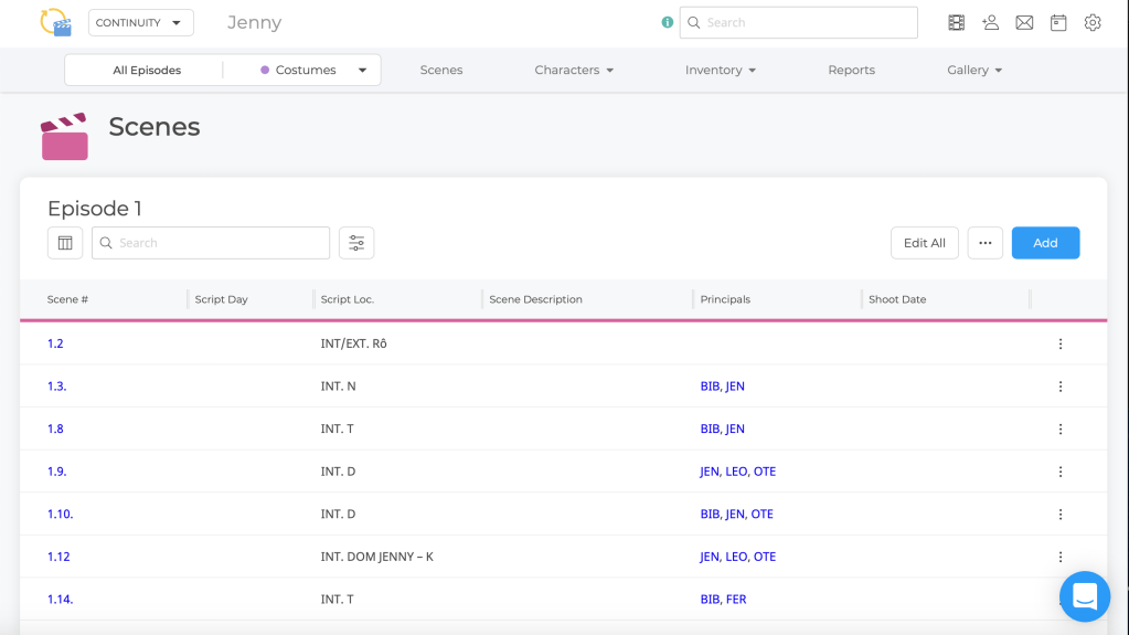 Umožňuje dôkladnú prípravu skriptového scenára podľa scény, postáv, lokácii, výrobných dní… Môžete nahrávať fotky z fitingov aj náväznosti priamo z výroby a pridávať poznámky, inventarizovať kostýmy a dokonca aj pripraviť report bugetu pre produkciu.