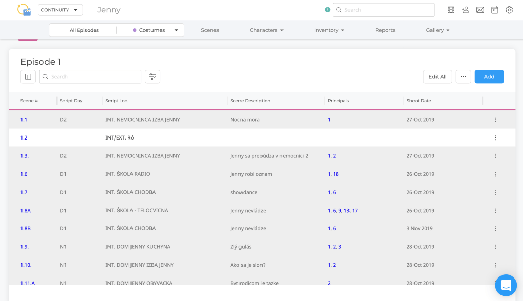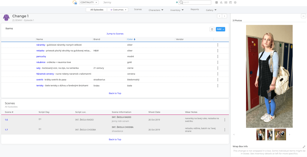 Ako to už býva v dneškom komerčnom svete zvykom, za všetko dobré sa platí. K dispozícii je ale sedemdňová trial verzia, ktorú som vyskúšala na účely napísania tohto článku. Použila som scenár z natáčania seriálu Jenny, kde som navrhovala kostýmy. V nasledujúcich ukážkach sa teda budem ukazovať, ako program uľahčuje prácu na kostýmoch.