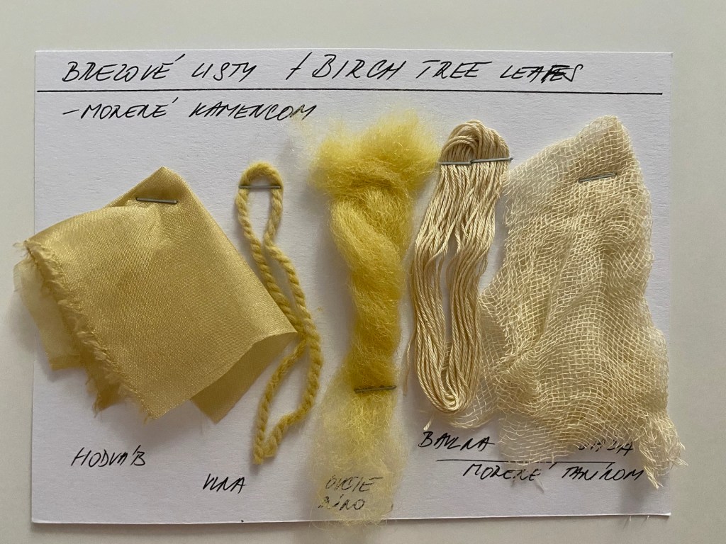 O tom, že brezové listy farbia na žlto, som netušila. Pigment sa ale lepšie viaže na živočíšne vlákna – viď obrázok – a je potreba naozaj veľa listov na dosiahnutie sýtejšej žltej.