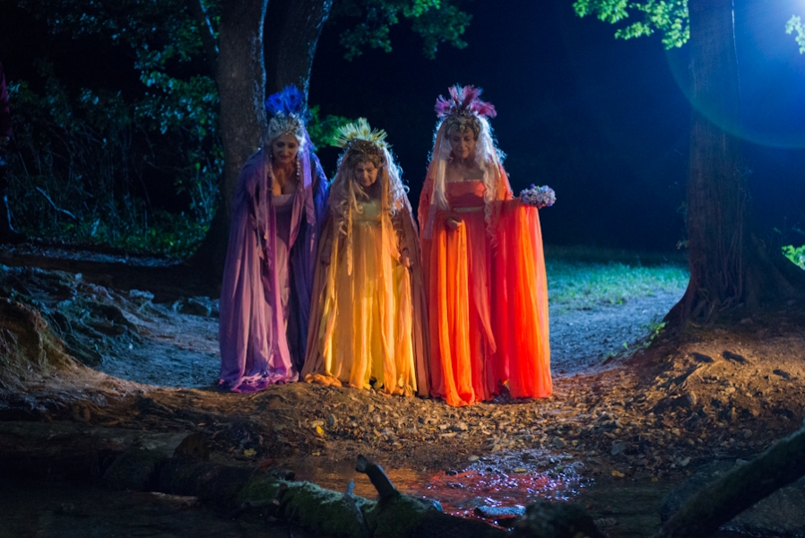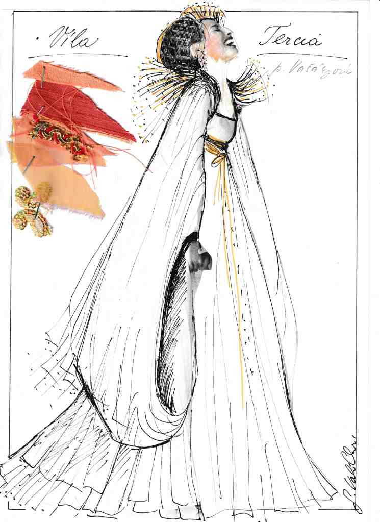 SV: Pri vílach som stále uvažovala o dobovosti, boli jemne štylizované, v konečnom dôsledku majú kostýmy víl renesančný živôtik a v detaile renesančné zdobenie. Vedela som, že scény víl sa budú odohrávať v tme, v lese a že budú lietať. Kostým som preto musela vymyslieť vzhľadom na trikové zábery tak, aby bol výtvarný, ľahký, éterický, ale aj technicky funkčný, keďže herečky boli zavesené v štúdiu vo výške 2,5m na zelenom kľúčovacom pozadí. Zvolila som preto dlhé rukávy a pásy, aby sa schovali popruhy, pásy a laná.